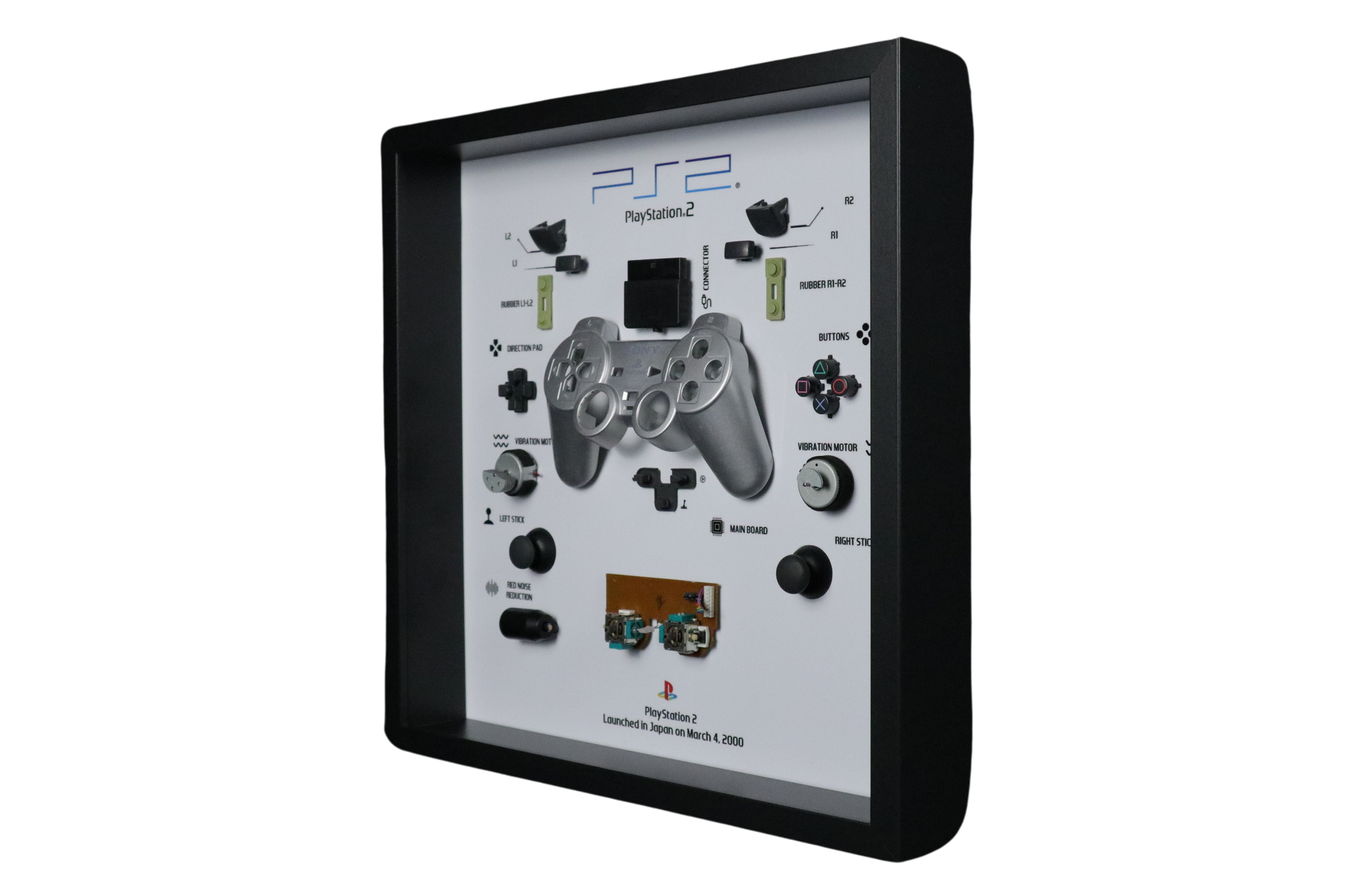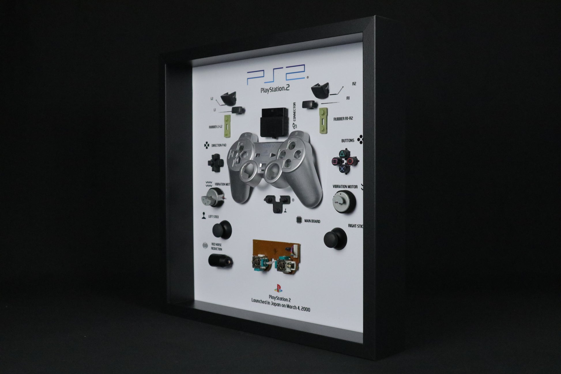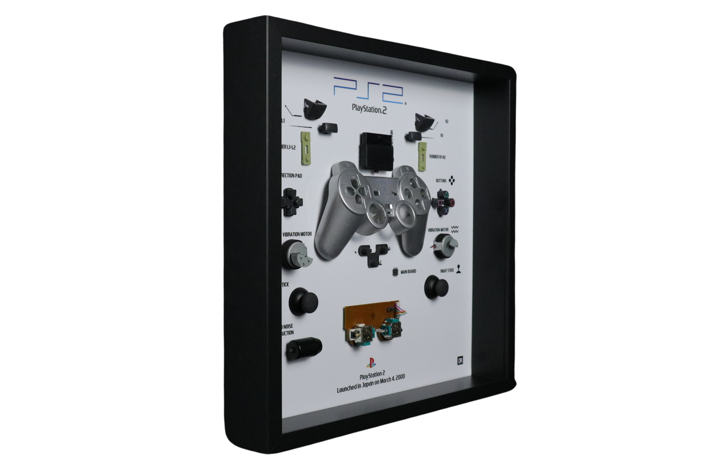 Êtes-vous un véritable fan de PlayStation 2 ? Ce cadre unique en son genre est un incontournable pour votre collection ! Fabriquée à partir d'une manette PlayStation 2 originale, cette superbe pièce présente une représentation détaillée de ce qui se trouve à l'intérieur d'une manette de jeu classique !