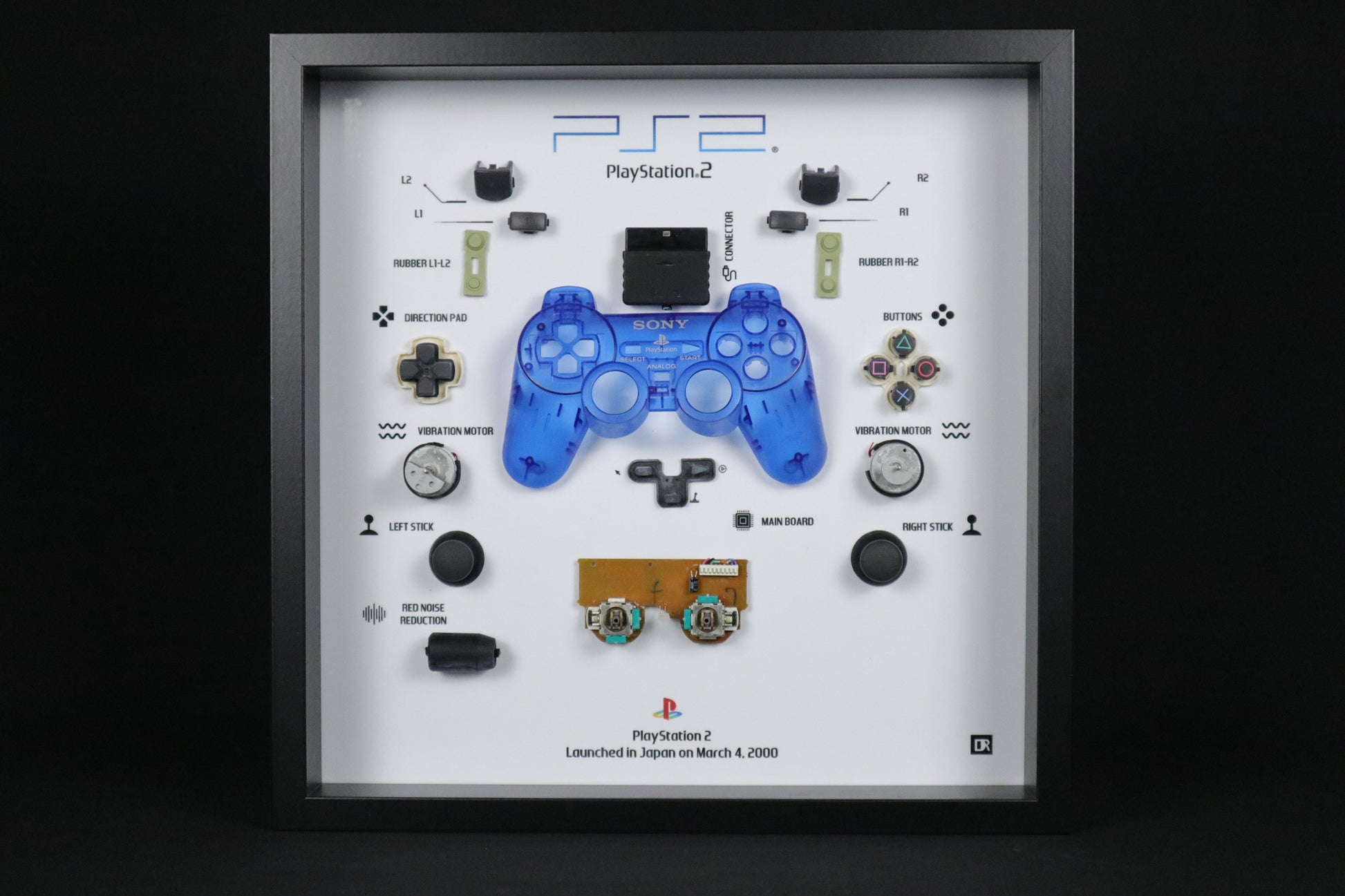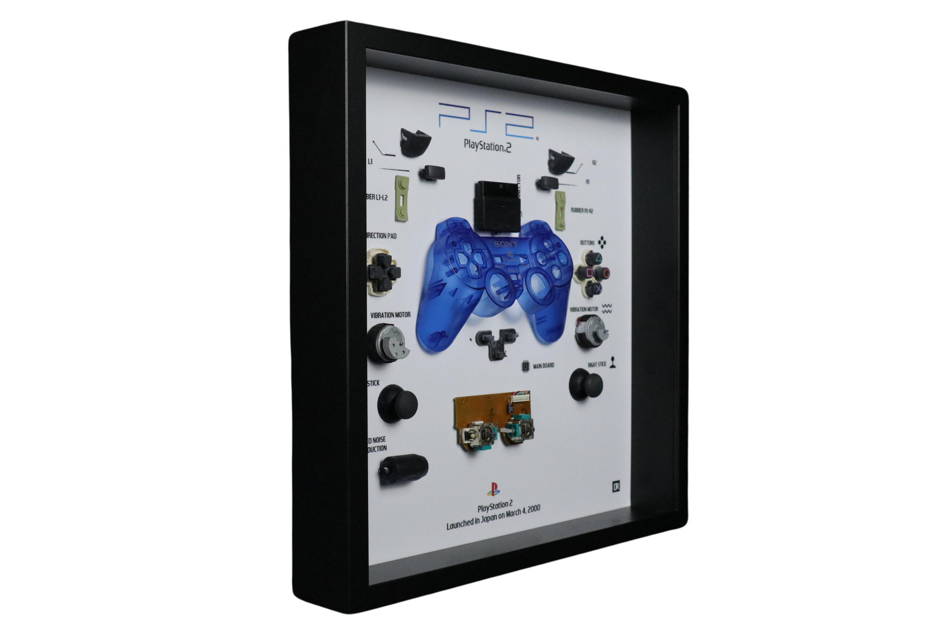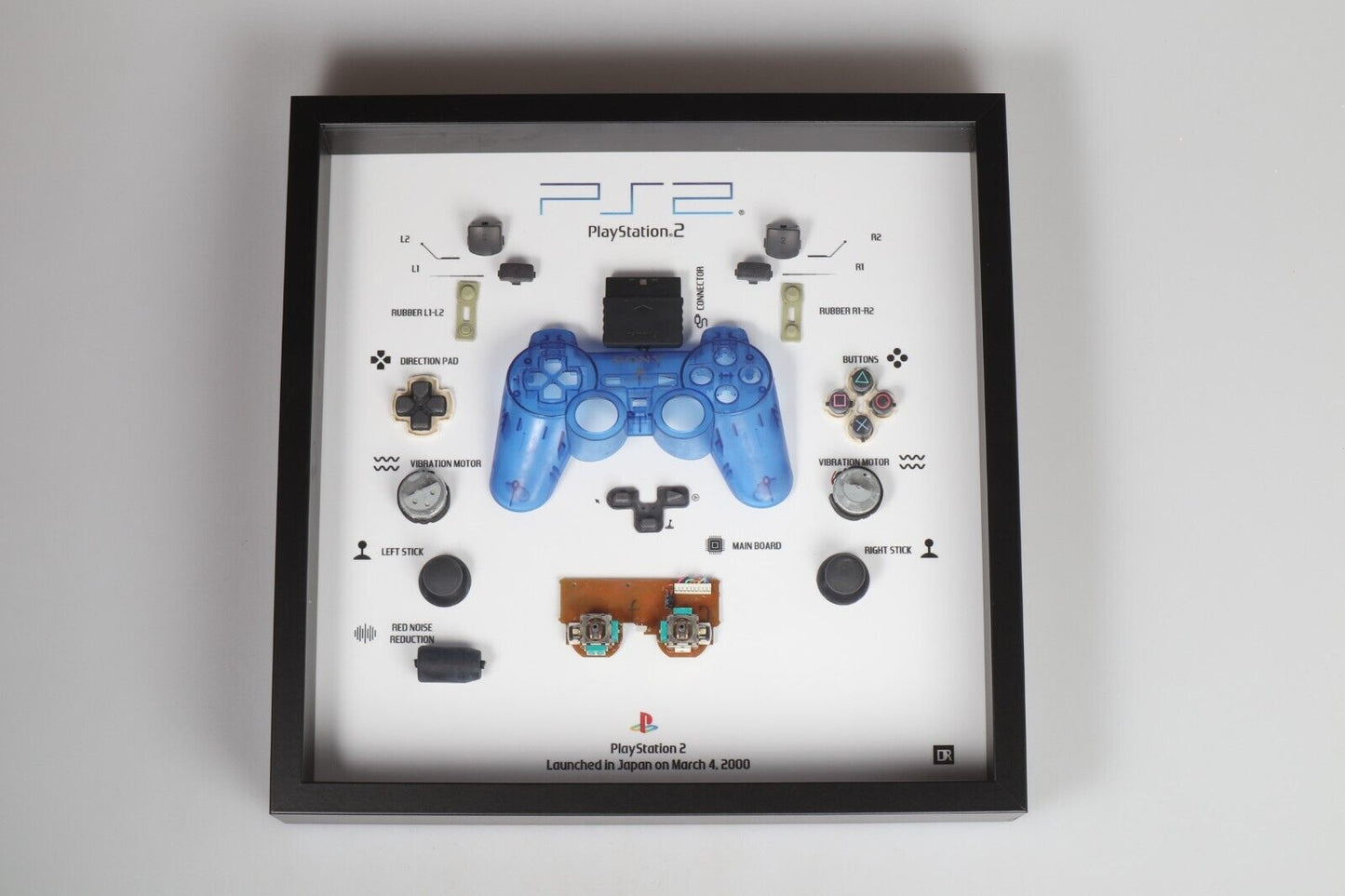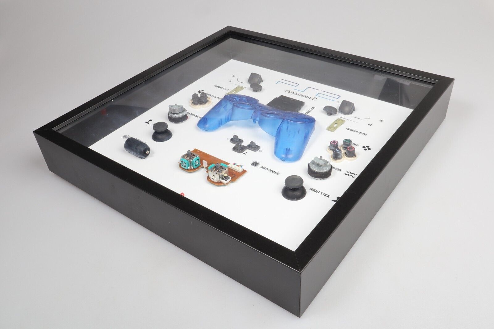 Ben jij een echte PlayStation 2-fan? Deze unieke lijstkunst is een must-have voor je collectie! Gemaakt van een originele PlayStation 2-controller, toont dit verbluffende stuk een gedetailleerde weergave van wat er in een klassieke gamecontroller zit!
