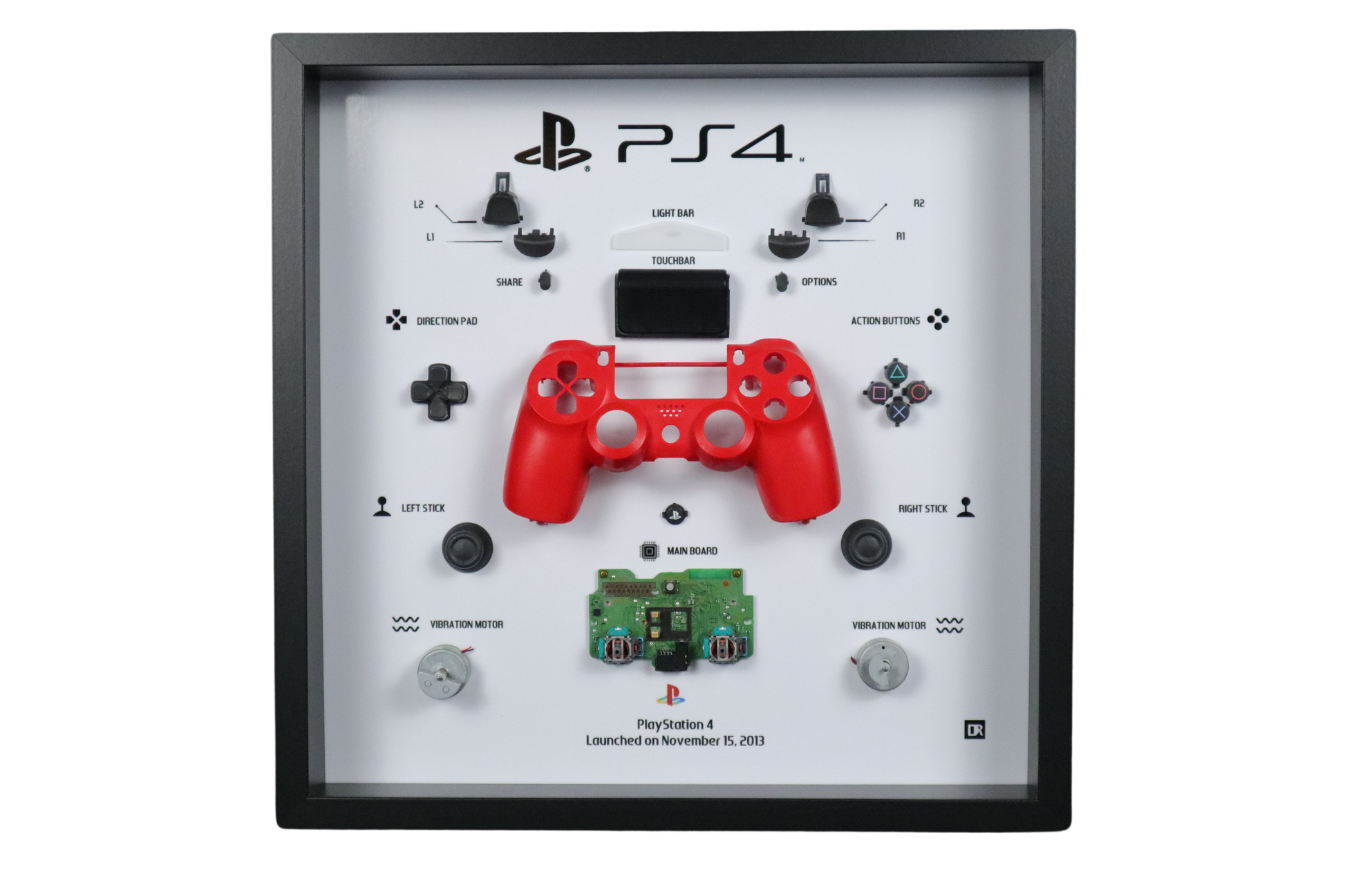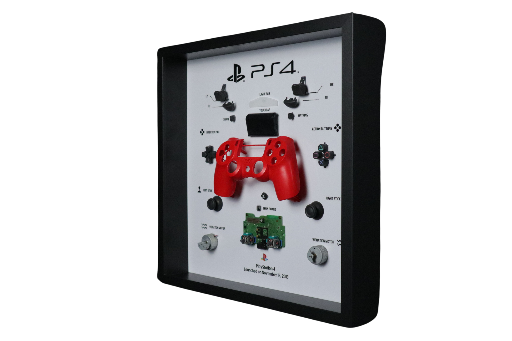 Are you a true PlayStation 4 fan? This one-of-a-kind frame art is a must-have for your collection! Crafted from an original PlayStation 3 controller, this stunning piece showcases a detailed depiction of what is inside of a classic gaming controller!